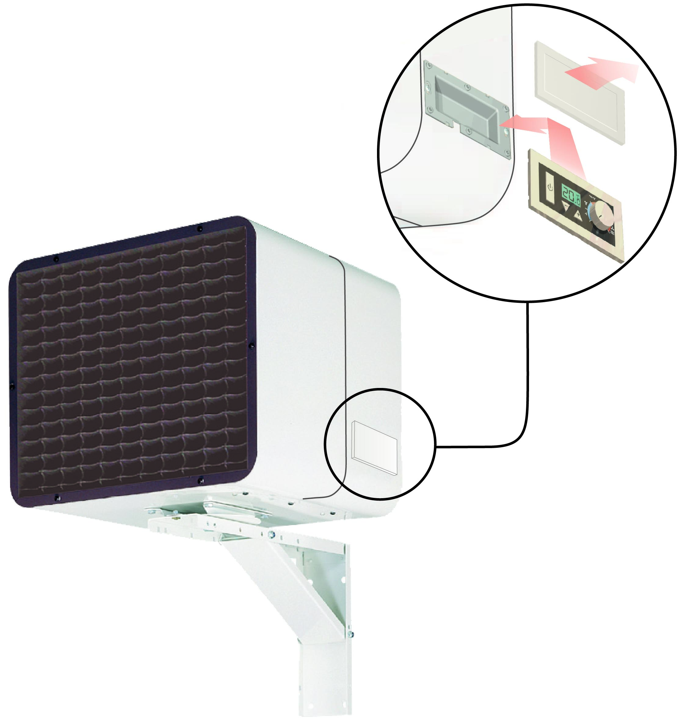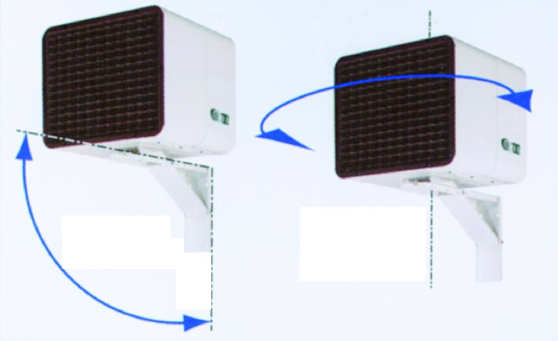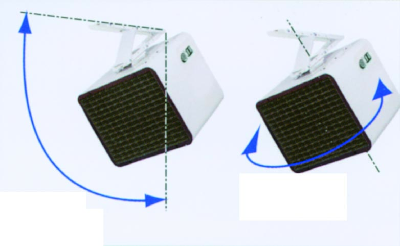 Pueden ser instalados tanto en pared como en techo, inclinables hasta 90º y orientables hasta 180º. Su soporte especial permite la orientación precisa del aerotermo para optimizar el rendimiento y dirigir el flujo de aire hacia donde sea necesario.