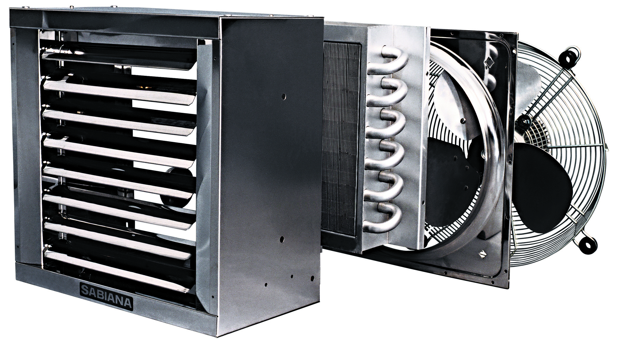 Los aerotermos TECNA SABIANA AIX están construidos en acero inoxidable AISI 304 tanto en la carcasa como en los tubos de batería y aletas de aluminio. Pueden ser alimentados con agua caliente sobrecalentada o a vapor y por su gran resistencia a los agentes corrosivos presentes en los ambientes que están instalados, son perfectos para su uso en la industria alimentaria, invernaderos, granjas, etc.