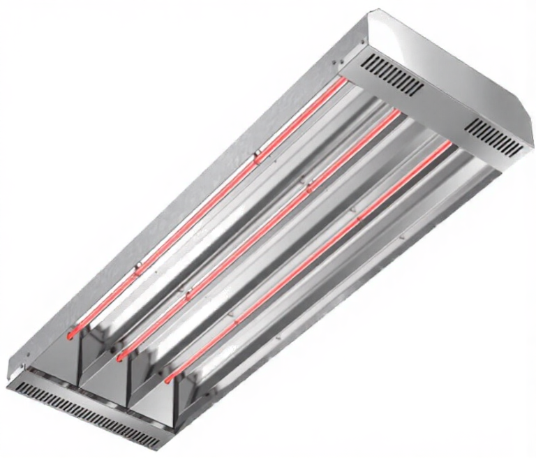 El calefactor eléctrico radiante TECNASTRIP BIH-AP es un calefactor infrarrojo de color negro, con una placa negra para evitar la emisión de luz y aumentar la eficiencia energética del equipo. Protección IP54.