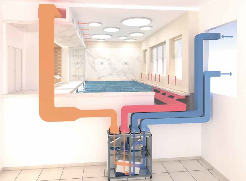 Las unidades de tratamiento de aire TECNA SABIANA NEPTUN están específicamente diseñadas y fabricadas con el doble objetivo de mantener un correcto nivel de humedad en el interior de las piscinas cubiertas y, al mismo tiempo, garantizar un alto nivel de confort para los usuarios. Todas las UTAs NEPTUN están totalmente reguladas y equipadas con una interfaz de usuario fácil de manejar. La serie NEPTUN consta de dos versiones: la versión estándar en horizontal (Neptun) y la versión vertical con tomas en la cara superior (Neptun-V). Para cada configuración está disponible la versión HP, que integra en su interior una unidad frigorífica con bomba de calor. Las unidades NEPTUN HP están disponibles en 14 tamaños con caudales de hasta 33.500 m3/h, mientras que las unidades NEPTUN-V HP están disponibles en 4 tamaños con caudales de hasta 5.200 m3/h. La versión NEPTUN-V-HP está diseñada para SPA y piscinas pequeñas. Unidad compacta con doble etapa de recuperación estática más tercera etapa de recuperación termodinámica gracias al circuito de bomba de calor. Totalmente regulado, es ideal para la deshumidificación de salas de SPA y piscinas, garantizando un alto ahorro de energía.