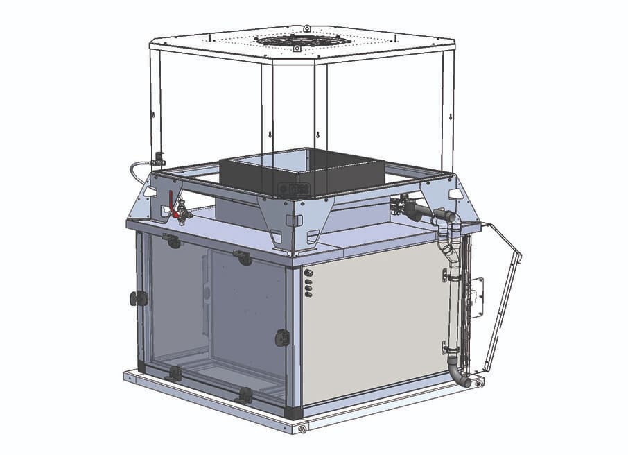 Complemento opcional para calefacción, formado por compuertas automatizadas para la recirculación del aire caliente interior (con posibilidad de filtrado F7) más una compuerta de aire exterior para introducir aire limpio en el interior. La recirculación de aire se combina con aire fresco del exterior. El calor acumulado en el techo, generado por factores internos y externos, se utiliza para mantener una temperatura de suministro adecuada mientras se ventila.