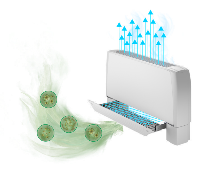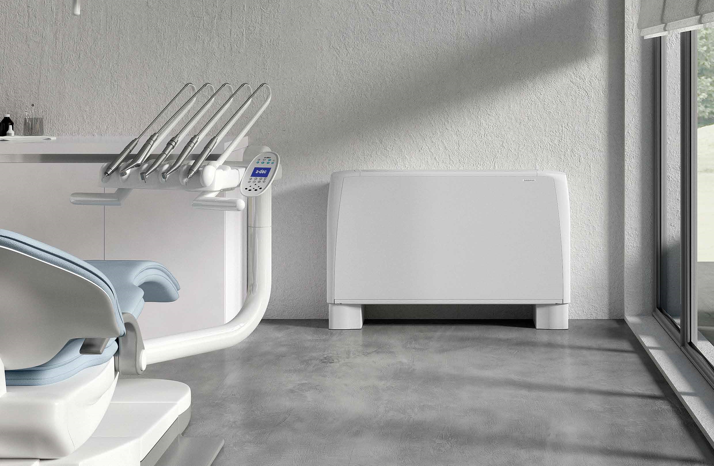El fancoil con envolvente, tipo mueble, TECNA SABIANA CARISMA CRC MV 4 TUBOS, especialmente adecuado para entornos comerciales, oficinas, museos, etc. es un producto puntero en diseño, prestaciones, silencio, consumo y funcionalidad. Es apto para instalación vertical con aspiración inferior.
