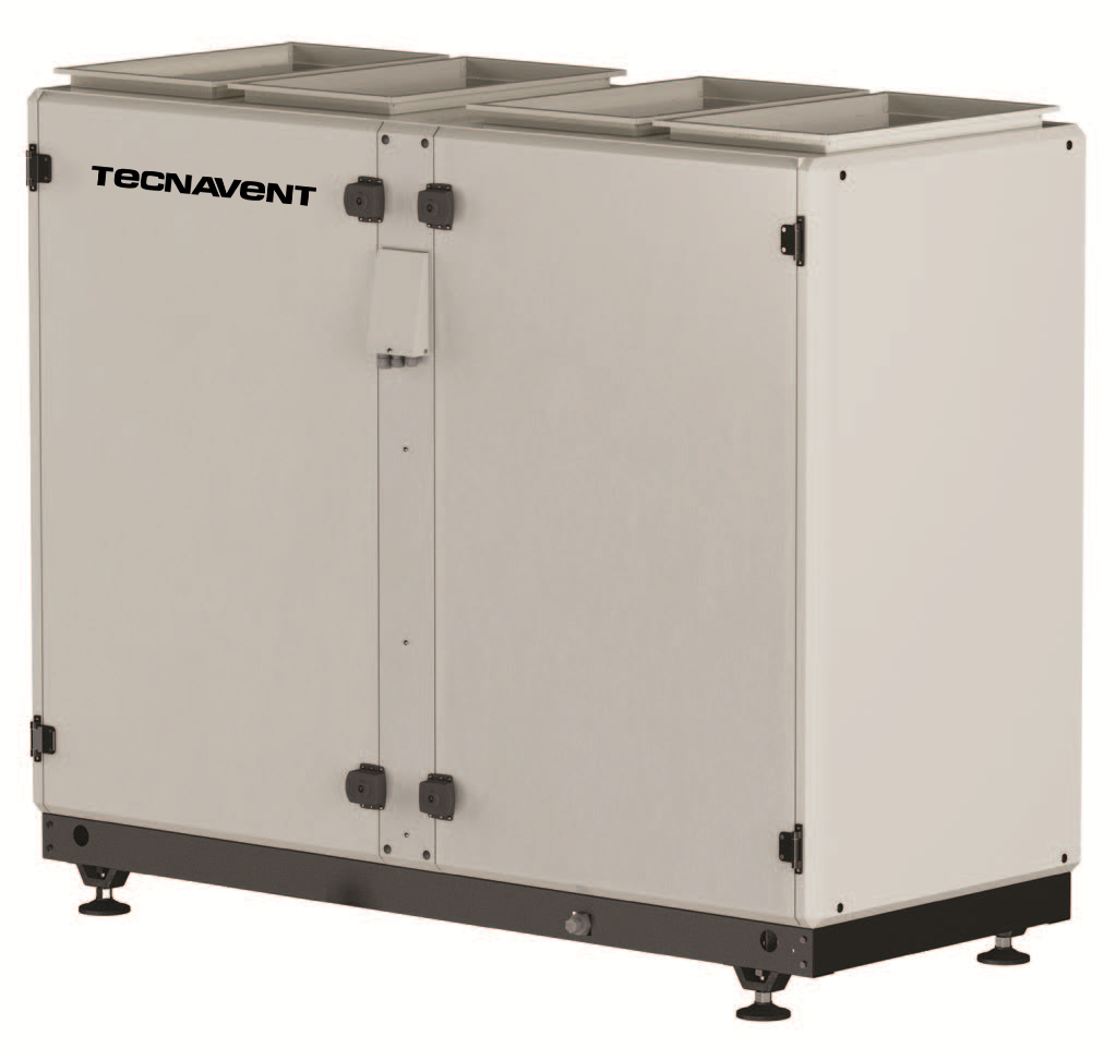 La gama de recuperadores de calor a contracorriente TECNAVENT CFVE está diseñada y construida conforme a la directiva de ecodiseño conocida como Directiva ErP y desarrollada conforme al Reglamento UE 1253/14, proporcionando una eficiencia térmica de recuperación de hasta el 93 %. Se trata de una serie de recuperadores de calor muy adecuada para la ventilación con recuperación de calor en ambientes públicos de mediana y gran dimensión, especialmente de hoteles, cines, teatros, aulas u oficinas. Disponible hasta 6.050 m3/h, configuración con flujos verticales, la gama está pensada para su instalación en el interior de las edificaciones para montaje en suelo. Esta serie de recuperadores de calor también está disponible en versión con flujos horizontales en configuración de doble piso.