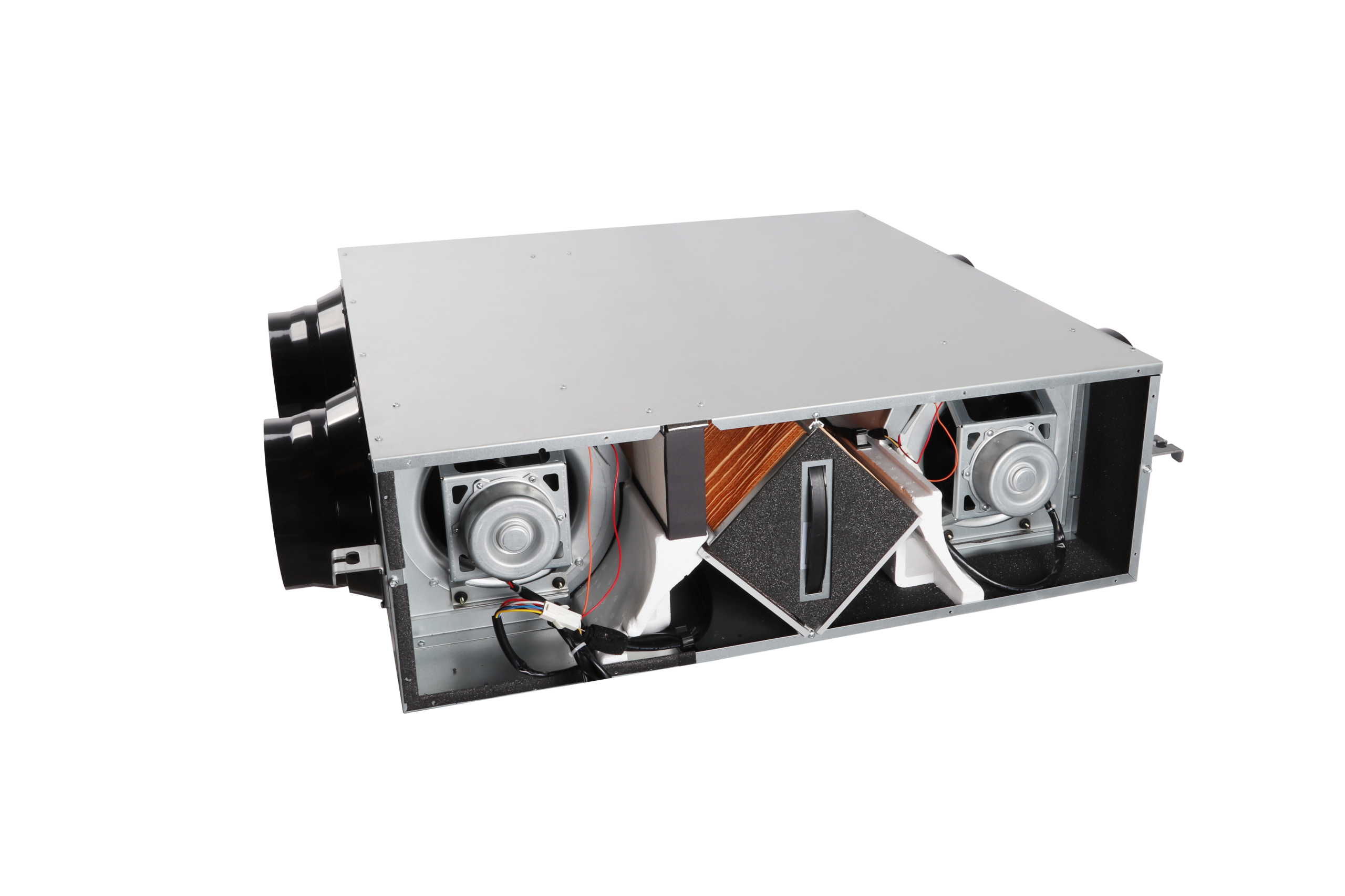- Intercambiador entálpico de flujos cruzados, eficiencia hasta 82%.