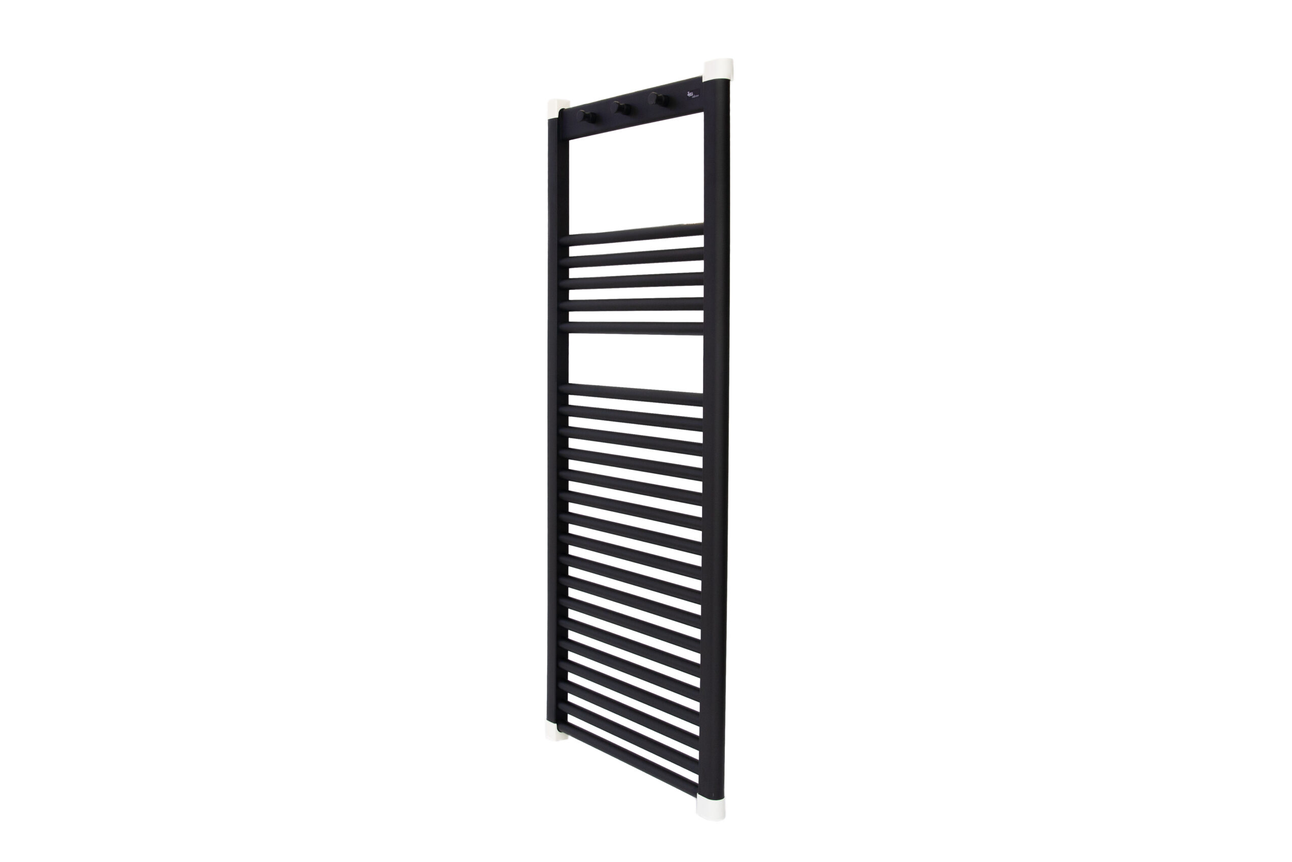 Radiador toallero CICSA Comodo, de la gama Classic. Diseñado especialmente para colocarlo en el baño, es estético y muy útil, ya que se puede usar como calefacción y secatoallas. Fabricado en acero. Con versión hidráulica y eléctrica. Potencia térmica de hasta 716 W. Sus medidas son de 800 mm a 1600 mm (alto) x 500 mm (ancho) y una distancia entre ejes de 450 mm. Disponible en color blanco, negro mate y cromado.
