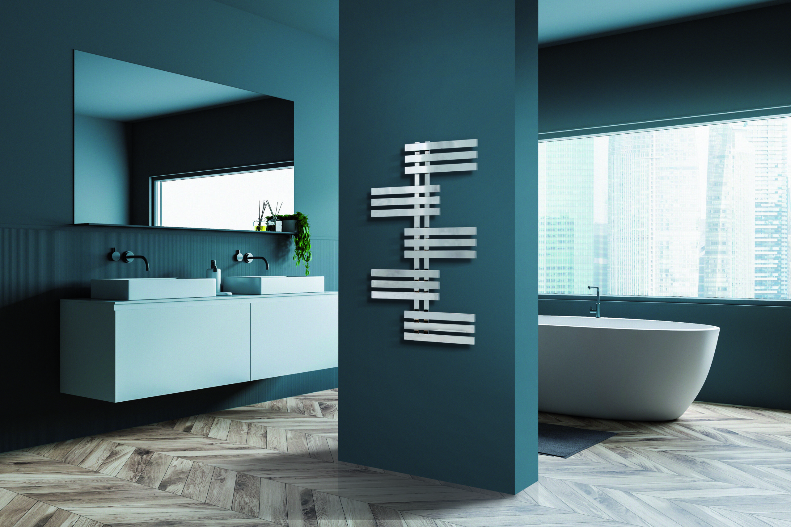 Radiador toallero CICSA Elfie, de la gama Deco. Diseñado especialmente para colocarlo en el baño, es estético y muy útil, ya que se puede usar como calefacción y secatoallas. Fabricado en acero. Con versiones hidráulica y eléctrica. Potencia térmica de 354 W. Sus medidas son de 1200 mm (alto) x 600 mm (ancho) y una distancia entre ejes de 60 mm. Disponible en color blanco y cromado.