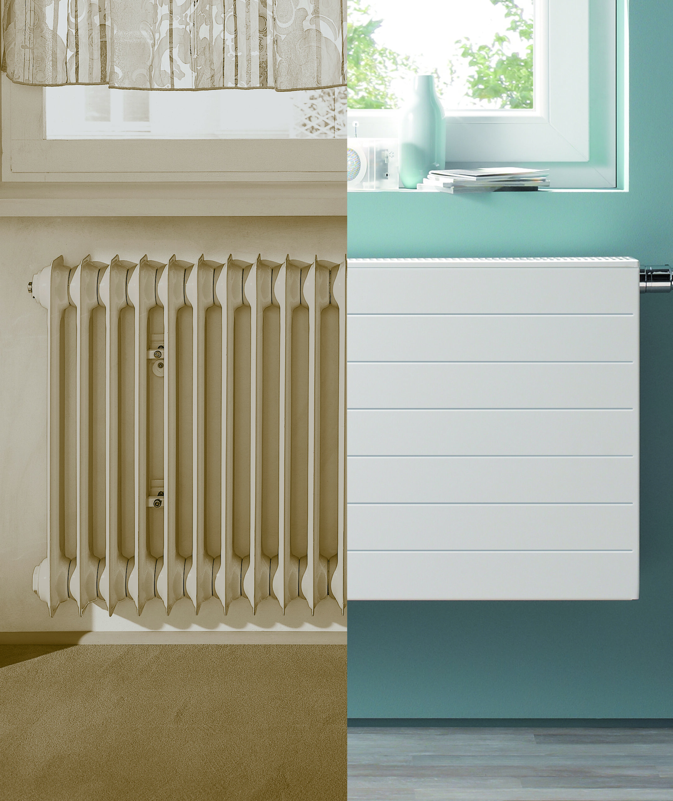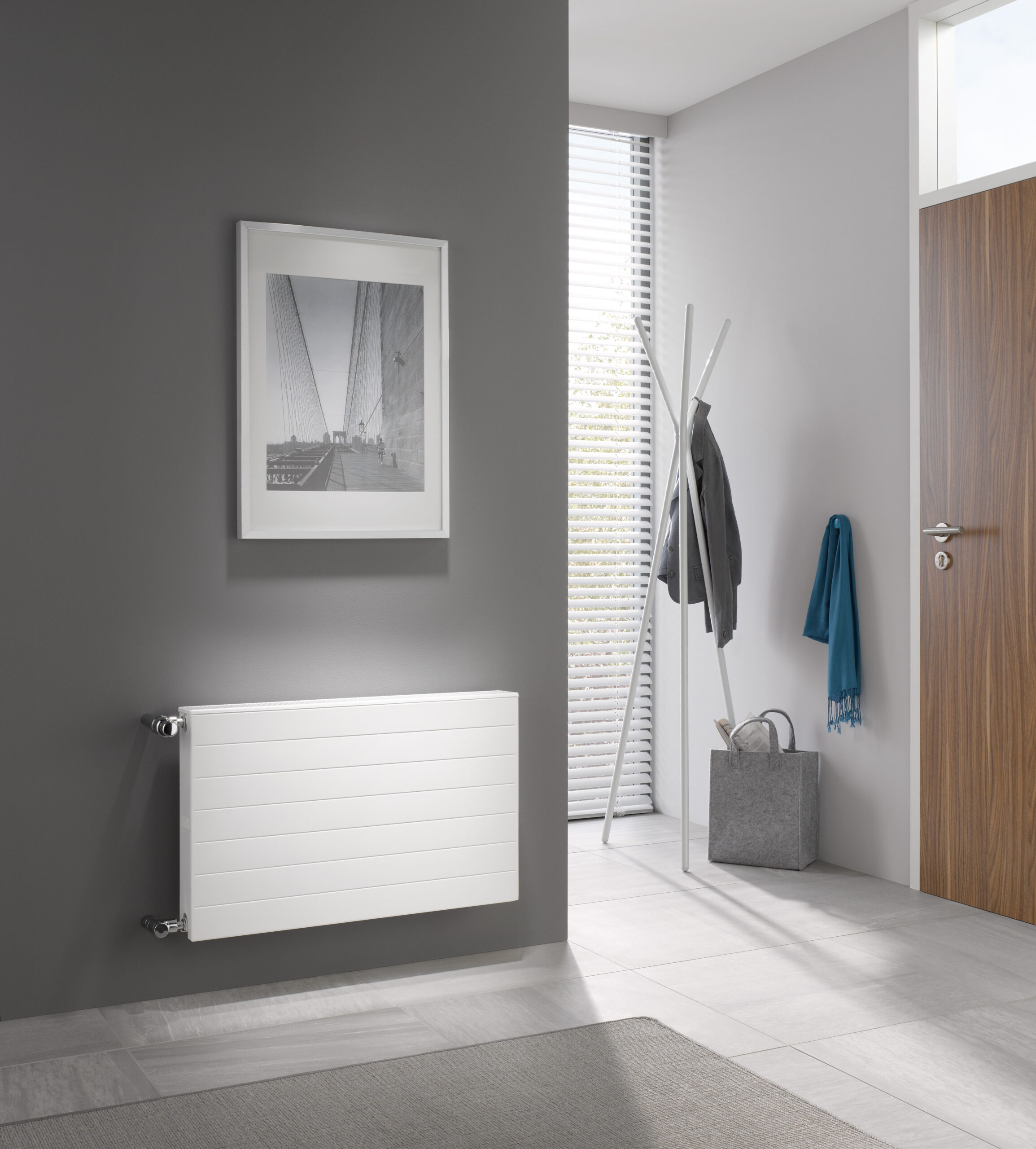 Los paneles de acero Kermi con tecnología therm-x2 se basan en el principio patentado x2 de flujo en serie: el agua fluye primero a través del panel frontal. Esto se traduce en hasta un 11% más de ahorro de energía, hasta un 25% menos de tiempo de calentamiento del radiador y hasta un 100% más de calor radiante confortable. Serie con distancia entre ejes estándar para la reposición de radiadores sin laboriosos trabajos de rotura y demolición.
