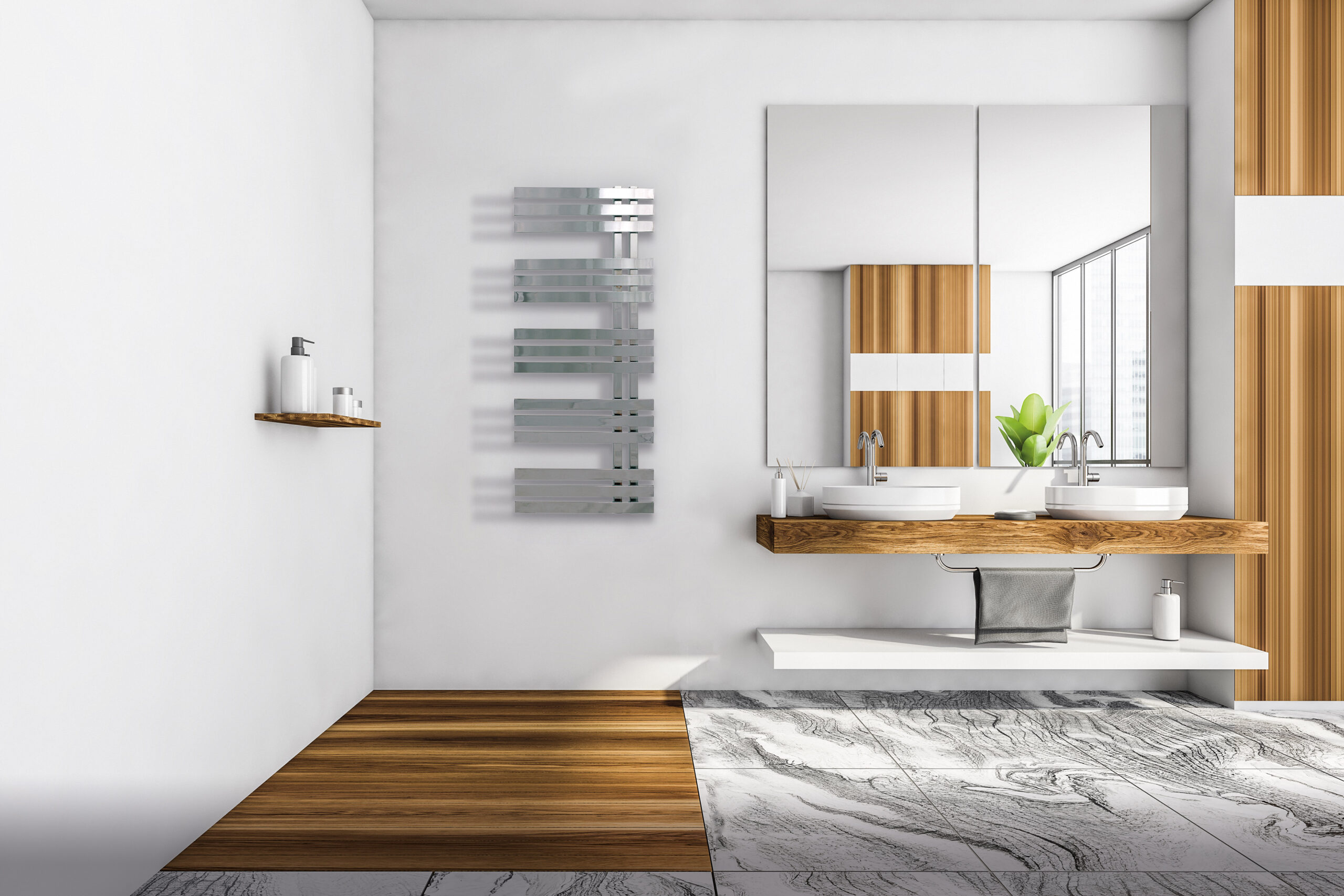 Radiador toallero CICSA VERONA, de la gama Deco. Diseñado especialmente para colocarlo en el baño, es estético y muy útil, ya que se puede usar como calefacción y secatoallas. Fabricado en acero. En versiones hidráulico y eléctrico. Potencia térmica hasta 568 W. Disponible en medidas 800 mm a 1.200 mm (alto) x 500 mm (ancho). En colores blanco mate con textura, negro mate con textura, capuccino con textura y cromado.